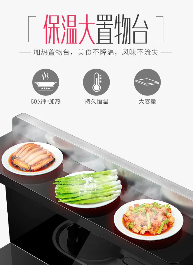 针对这类情况,佳歌集成灶设计搭载了能够同时放下三个长型鱼盘的恒温顶部加热置物台。考虑到人体的口腔、食管和胃的耐受温度为50-60℃,过烫的食物会对器官造成损害,而冬季大家都倾向于吃热腾腾的菜,综合考虑,佳歌集成灶顶部置物台将自身温度保持在65℃-70℃。