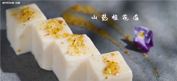 取山药半株,心事一钱,放进亿田专业级蒸箱蒸制15分钟,再取淡奶油、牛奶、吉利丁片各少许,均匀搅拌,放进容器冷凝定型,最后取出切块,点缀上桂花蜜,入口糯软,香甜滑腻。细抿之处,如与岁月无声地交流,别有一种相思,两处闲愁,才下眉头,却上心头。