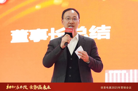 德意智家营销总经理阮金成对2024年度德意电器各相关工作进行了全面的回顾与总结,并发布了《2025年度电器工作规划报告》。他总结,2024年是再创佳绩的一年,也是不断突破自我的一年,在终端建设、形象升级、门店运营、打造爆款产品等方面,都取得了令人瞩目的成绩。2025年,德意将会依托现有优势,坚持拓渠道、铺终端、强运营,乘势拼搏出更加辉煌的未来。