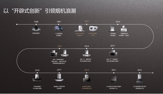 2019年,发布超薄低吸油烟机,打破了用户对油烟机的认知,开创了全新形态;