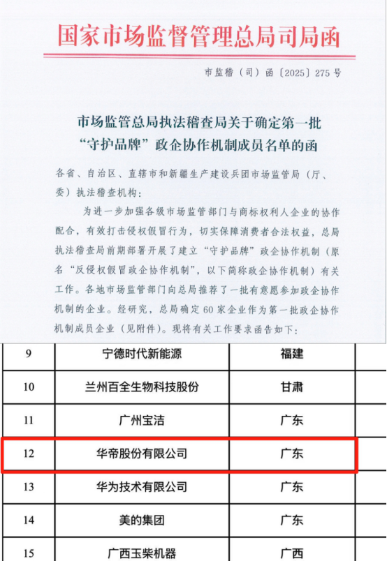 而该机制通过整合行政资源和企业力量,构建了从线索到联合调查、最后成果共享的闭环。入选该机制后,华帝将获得更高效的维权保障:发现重大侵权案件线索时,可提请省级市场监管部门组织查办,必要时由市场监管总局统筹协调跨区域执法,维权响应速度与执法力度将得到显著提升。这既是对企业品牌价值的高度认可,更是政企协同护权、践行“政务亲商”服务理念的具体体现,为企业高质量发展提供优良环境。