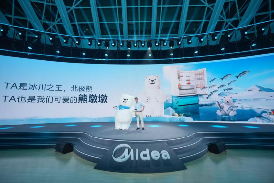 在这样的行业背景下,美的熊墩墩家族的推出可谓恰逢其时。发布会现场,以"冰川之王"北极熊为灵感来源、经艺术化演绎而成的憨态可掬的美的熊墩墩家族人偶IP惊喜亮相,其萌趣形象瞬间点燃全场氛围。但它的登场可不只是“靠脸吃饭”,据美的用户研究首席专家刘秀蔓介绍,这一可爱的熊墩墩人偶每一处设计都蕴含着对产品特性的巧妙映射。其大身躯与纯白毛色,不仅延续了北极熊的经典形象,更象征着产品的大容量以及可完美隐藏于家居背景的嵌入式设计,能够轻松融入各种家装风格;而北极熊超越犬类7倍的敏锐嗅觉,能快速追踪气味和异味的特性,则被转化为产品搭载的PST+智能净化技术,可实现3分钟急速净味;作为"口味挑剔"的杰出代表,北极熊时刻追求最新鲜的食材,更是巧妙呼应了产品对食材新鲜度的极致追求,精准满足消费者对高品质保鲜的严苛需求。