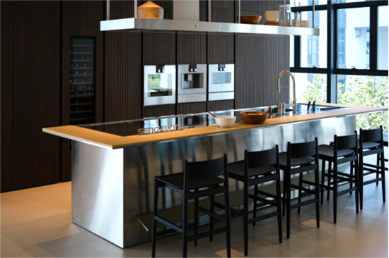 打破“不锈钢=工业风”的固有认知,SENG CUCINE将材质从“功能工具”升维为“美学载体”。品牌以意式极简为核心,组建由意大利殿堂级设计师Enrico Tonucci领衔的中外设计团队,定期举办国际设计交流会,将阿斯顿・马丁的超跑流线美学、自然年轮纹理等元素融入设计。