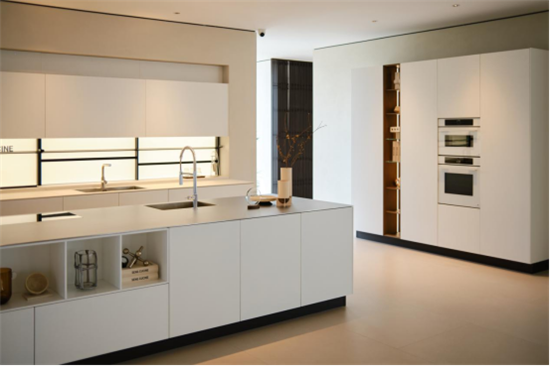 其打造的六大空间系统(中西厨、卧房、亲水、客餐厅社交、墙护、户外餐厨),既能满足别墅业主的社交型厨房需求,也能为小户型提供“12mm超薄柜体”的空间解决方案。