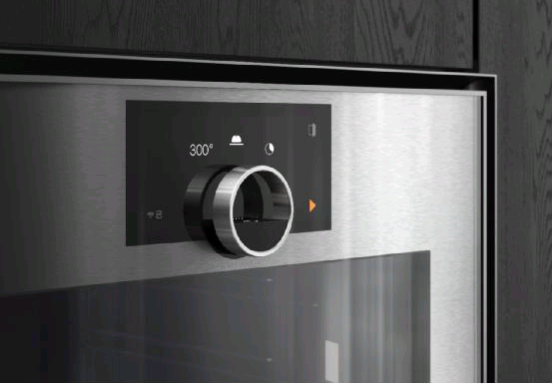 新品系列以悬浮于艺术门板与控制面板之间的“浮寰(The Ring)”为视觉中心,重新诠释实体触控的价值。这块悬浮于暗色玻璃门板之上的金属圆环,凝结着嘉格纳的工艺哲学——实心不锈钢历经复杂金属切割与手工打磨抛光,突破工业化效率优先的常规制造逻辑。凌空悬浮结构打破传统控件物理粘连的桎梏,环境光线在玻璃表面投映虚实交织的倒影,使功能控件升华为空间中的光影雕塑,其视觉架构严格遵循0.618黄金分割律,这种源自文艺复兴的数学韵律在极简形态中铸就永恒和谐,恰如“厨房中的蒙娜丽莎”所承载的艺术盛誉。