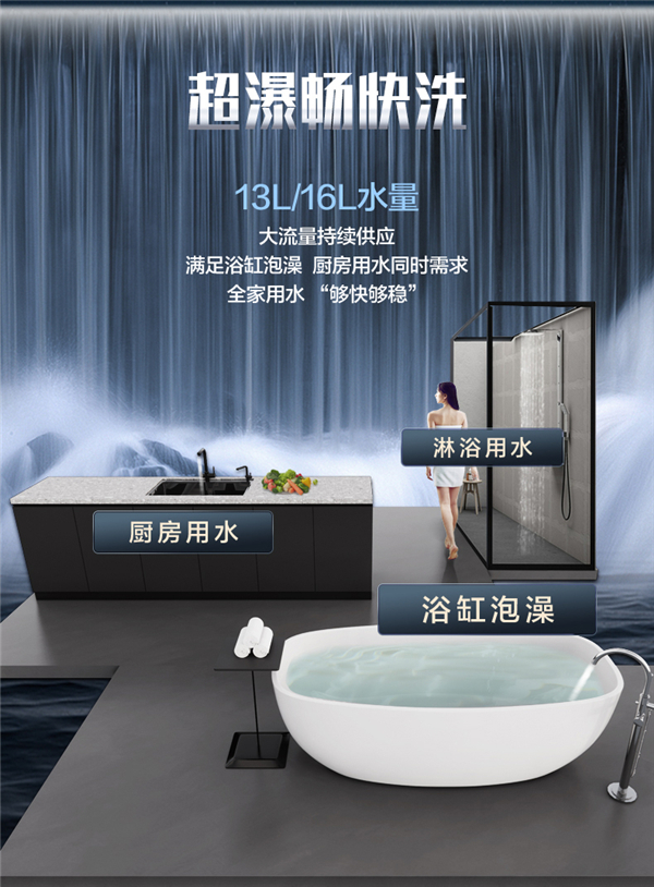 技术层面,直流变频电机实时捕捉进水流量与水压变化,比如厨房水龙头突然开启、洗漱台频繁开关,PID算法同步调节燃气功率,两者协同将水温波动牢牢锁在±1℃内。实际体验中,晨起洗漱时,无论是洗脸的温水还是刷牙的水流,温度始终稳定,避免冷水刺激晨起敏感的肌肤;厨房场景里,冬季洗菜时的温水不冻手,夏季洗餐具时的水温不烫肤,即使中途有人开启淋浴,各出水口水温依旧平稳,告别厨房和卫生间同时用水就忽冷忽热的尴尬。这种全场景的恒温能力,让家庭用水从“将就”变“精准”。