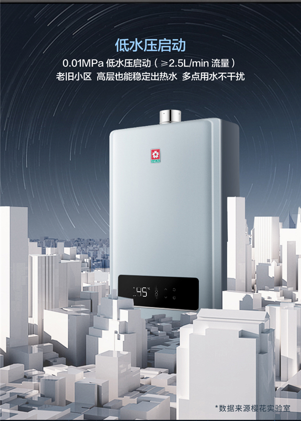 不同季节、不同场景对水温的需求千差万别。夏季冲凉需清爽不烫,冬季泡澡需温暖持久,日常洗漱则要温和舒适。樱花这款燃气热水器通过“宽幅调温+精准控温”的双重设计,实现全场景覆盖。