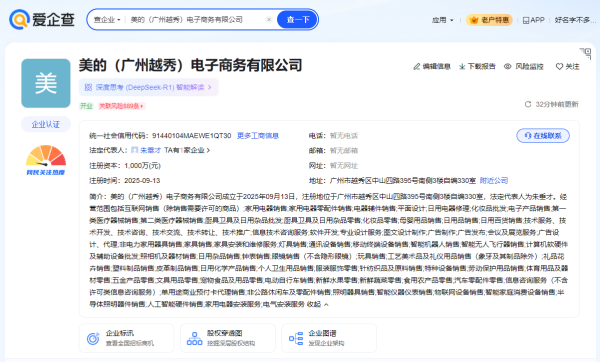 美的(广州越秀)电子商务有限公司的成立,是美的集团在电商领域的一次重要拓展。未来,随着公司业务的逐步开展,其在智能机器人销售等新兴领域的表现值得期待,也将为美的集团在多元化发展的道路上增添新的助力。