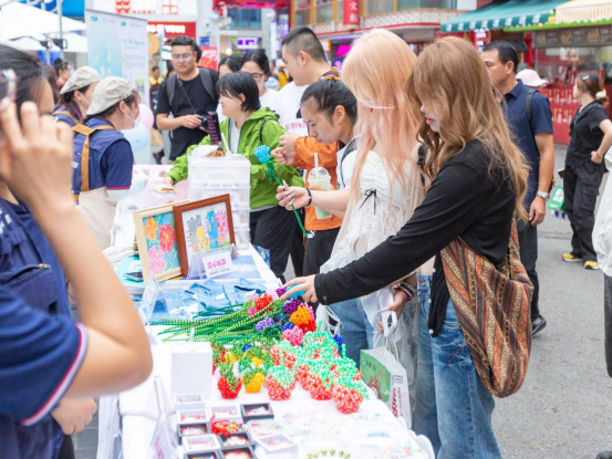 随后,“星星的孩子”组成的乐团登上舞台,与安秋金、家长代表一起献上多个精彩表演,成为了当天青云市集最耀眼的“星”。与此同时,现场的公益义卖区也热闹非凡,“星星的孩子”们亲手制作的非遗扎染、绘画作品和手工甜品等,引来众多市民驻足支持。