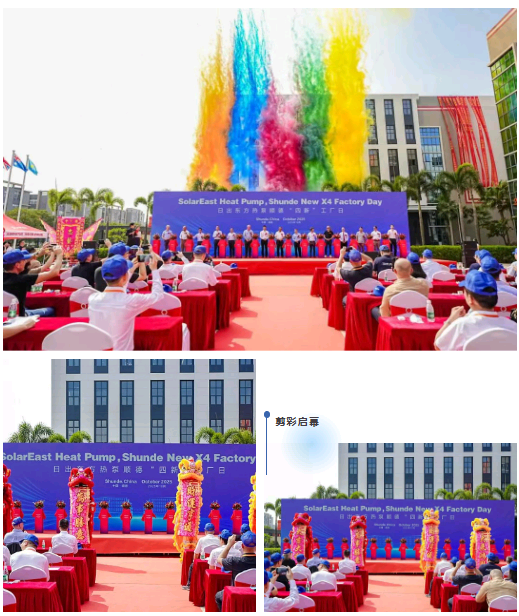 当绿色能源浪潮席卷全球,热泵作为高效清洁的能源装备,正成为推动“双碳”目标、链接国际合作的关键纽带。10月16日,四季沐歌空气能热泵顺德“四新”工厂日活动盛大举行,顺德高新区管委会主任金辉、副主任吴俊锋,顺德区贸促会会长韩治帮,澳洲、荷兰、俄罗斯、葡萄牙等多国客户及供应商代表,与日出东方董事长徐新建及公司高管团队、员工代表齐聚顺德基地,共同见证这座集“新厂房、新产线、新实验室、新产品”于一体的现代化工厂正式启用。