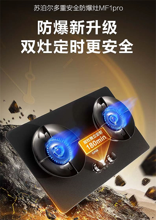 在此背景下,当传统燃气灶还在安全与性能之间摇摆时,在厨电领域深耕多年的苏泊尔推出了苏泊尔多重安全防爆灶MF1pro,针对传统灶具的诸多问题进行了全面升级。从根源上解决了面板高温炸裂的痛点;考虑到日常烹饪中的细节隐患,配备了定时熄火功能,搭载蜂鸣提醒设计,全方位覆盖传统灶具的安全漏洞,重新定义了安全厨房的基准线。