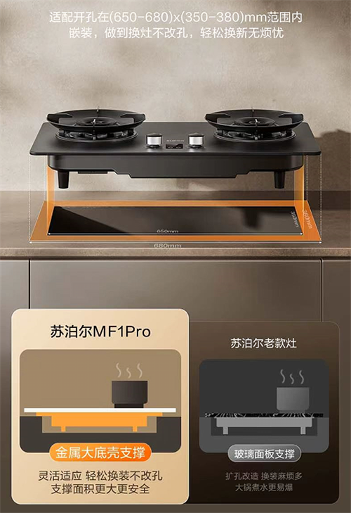 在以往的传统灶具更换过程中,许多家庭常常会遭遇“开孔不符”的棘手难题,重新开孔费用高且耗时,让人头疼不已。现在有了苏泊尔防爆灶MF1pro,解决难题。