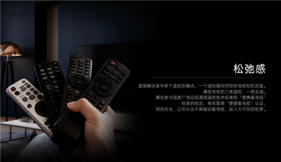 在家居场景中,“电视遥控、机顶盒遥控、影音设备遥控堆在一起,换台要找、切信号源要换”,早已成为多数家庭的共同烦恼。而康佳R10系列,以“三体遥控”为核心,直击这一操作痛点,让电视使用彻底告别繁琐,满溢松弛感。