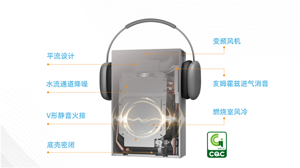 德意小精灵热水器在设计之初就将“安静”作为重点之一,通过七大降噪技术,从水路、风路到燃烧系统全面优化:V型静音燃烧火排,让火力集中不嘈杂;变频风机能根据需求自动调速,风声更轻;燃烧室用双重隔断阻隔噪音;底壳密闭连接进一步减小噪音传出;背部进气孔利用亥姆霍兹原理降低呼呼声;水流通道也做了顺滑设计,减少水流撞击带来的噪音;平流设计让气流顺滑低阻减少撞击噪音。全通路配合实现低分贝运行,达到一级静音标准,用水时安静如置身图书馆,营造舒适、宁静的用水体验。