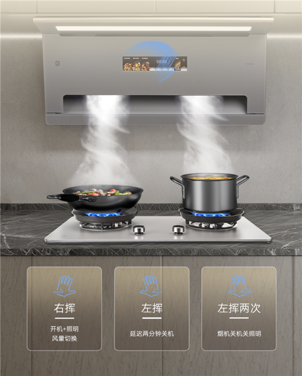 烹饪时双手忙碌,操作却依然可以优雅从容。樱花御风吸油烟机SCR-Q660M内置智能体感操控系统,让交互更纯粹,只需轻轻挥手,即可快速完成吸油烟机的启停调档的操作,无需触碰面板,即可让整个烹饪节奏更加流畅,无接触的智能生活体验,也让厨房空间更加整洁,排烟更高效。