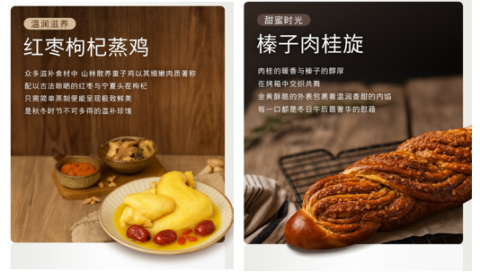 随着冬季来临,家居饮食更注重温暖与营养的平衡。博世御器Z6触启蒸烤一体机凭借精准的温控与多样的烹饪模式,为用户带来两道兼具风味与温度的冬季食谱,轻松实现从温润滋补到甜蜜暖心的味觉体验。一道红枣枸杞蒸鸡选用肉质细嫩的山林散养童子鸡,搭配古法晾晒的红枣与宁夏头茬枸杞,通过博世蒸烤箱的“低氧锁鲜蒸”功能,在双重澎湃蒸汽中高效锁住食材原味与营养。无需复杂调味与长时间看管,即可呈现肉质滑嫩、汤汁清甜的蒸制效果,成为秋冬家庭餐桌上理想的温补之选。而榛子肉桂旋肉桂的暖香与榛子的醇厚在博世烤箱中均匀受热,充分融合。其精准的3D热风烤功能使外皮金黄酥脆,内馅柔软香甜,每一口皆传递出冬日下午茶时光的温馨氛围。无论是家庭聚会还是个人享用,均为提升生活仪式感的暖心甜点。