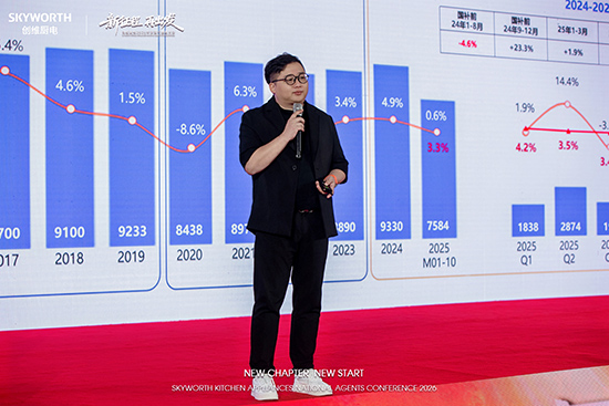 创维空调国内营销总监陈纪成先生则分享了空调业务的高速增长成果,2025年销售规模突破300万套,同比增长50%+。2026年将深化与厨电的异业联动,在渠道分销、终端展示、促销活动等方面深度协同,共同抢占家庭智能场景入口。