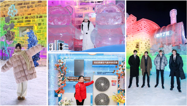 其中,“金马影后”马思纯携手美的中央空调研发总监雷俊杰,在此开启一场特别直播——车外是零下十几度的凛冽寒风,车内却恒温26℃、鲜花盛放,众多游客与线上观众循着暖意而来,共同见证这场跨越50℃温差的温暖相遇。这场集结明星与行业专家的直播,不仅是冰雪大世界的特色打卡体验,更用“科技+场景”的直观呈现,展现了家电品牌对冬日温暖的全新诠释。