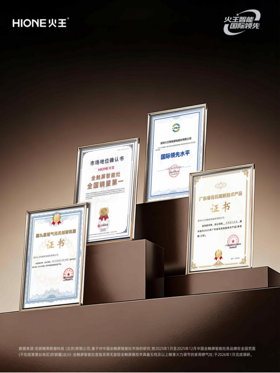 市场销量领跑:凭借对用户需求的精准洞察与交互革新,火王斩获“全触屏智能灶全国销量第一”,赢得了新一代家庭的广泛信赖。