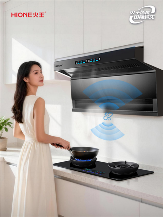火王智能烟灶,以行业首创的“风随火动”智能控风技术,真正实现了烟灶一体联动。