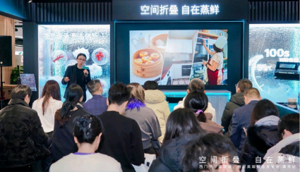 此外,现场设置多种互动与体验环节:在“出片”打卡区,产品与厨房场景融合展示,直观呈现一体化家装下的协调观感;“随心嵌”互动环节将“安装适配”转化为更易理解的体验方式;”百秒升温挑战”互动把关键性能具象化,让消费者在现场即可感受到启动与升温节奏的变化。同时,私厨蒸制与品鉴环节以更贴近家庭餐桌的方式呈现蒸鲜结果,让技术不仅看得见,也尝得到,进一步强化新品上市的记忆点与信任感。