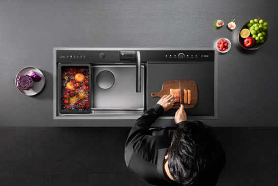 传统洗碗机被诟病的另一大原因是功能单一,似乎只为餐后服务,价值有限。方太新一代洗碗机的创新,打破了功能的边界,将其融入到整个厨房的工作流。开创性地将水槽、洗碗机、果蔬清洗机融为一体,实现了不弯腰即可操作的设计。充足的容量设计,可以轻松容纳11套餐具,应对家庭聚餐依旧从容。在此基础上,它将洗、切、配、沥的功能整合在水槽区域,让用户在备菜时就能随手清洗处理食材的刀具、砧板和小件餐具,饭后也能便捷处理锅碗。这种场景化集成的设计,让洗碗机从一个孤立的电器,转变为一个提升全家备餐效率、优化烹饪动线的清洗中心。它节省的不仅是洗碗的十几分钟,更是消除了烹饪过程中因动线混乱、反复清洗而产生的隐形耗时与烦躁感。
