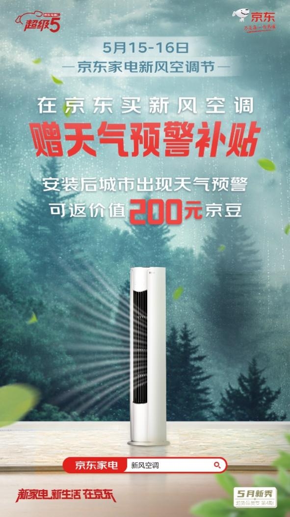 5月15-16日,京东家电新风空调节火热开启,并上线“天气预警补贴”,用户在京东购买指定型号新风空调后,安装城市若遇到天气预警,即可返价值200元京豆。此外,也不用担心空调焕新麻烦,京东家电针对空调产品自建了品类专属导购,一对一帮助用户解决空调选购难题,免费上门、免费拆机、免费搬运三免服务帮助用户解决售后问题,今年更是升级了“以旧换新”服务,仅需几秒就能在APP上完成一口价以旧换新,享受专属旧机补贴。这个夏天,就用一台新风空调焕新你的美好生活吧。