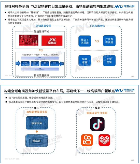 对于此次市场表现的“静悄悄”,厂商应该理性看待,随着渠道变革的推进,促销节点的大爆发恐难以持续,以抖音为代表的全域电商登上历史舞台,厂商也应注重日常流量的获取及转化。而随着线上下沉渠道占比增加,其与自有渠道的左右手互搏加剧,厂商需关注费用率和投入产出,逐渐由销量逻辑转向更为理性的生意逻辑。