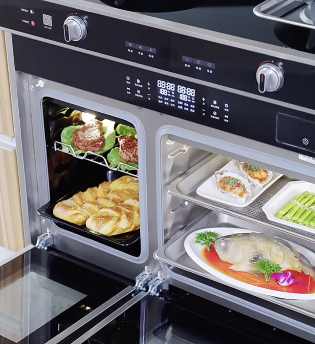 解决方法:烹饪结束尽量在蒸烤箱还有余温的情况下及时清洁,烘烤较油腻的食物时食物表面盖上锡纸,方便清理。另外,在蒸烤箱内胆方面,现在市面上集成灶多采用拼接工艺,容易藏污纳垢也容易生锈。而美多语音分蒸烤集成灶蒸箱、烤箱采用一体拉伸内胆,材质稳定工艺无拼缝,不易藏污纳垢,具有耐高温、耐腐蚀、附着力强等多重优势,表面光滑油污一擦即净,大大提升了内胆的清洁效率。
