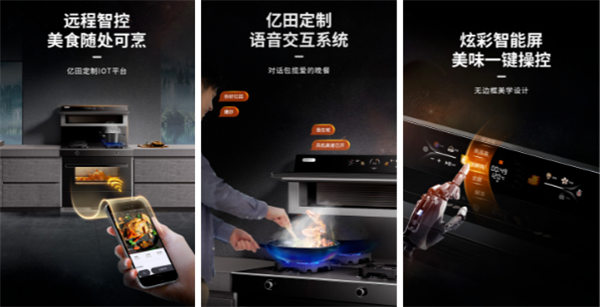 亿田D6ZK蒸烤炸集成灶,搭载超震撼尺寸智能彩屏、全程AI语音控制、跨设备联动、IoT远程智控等多重AI智能生态系统。