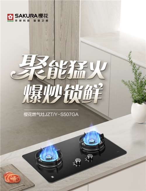 樱花燃气灶S507GA以澎湃巨焰守护烹饪时刻的畅快,描摹出幸福生活的自在与从容。