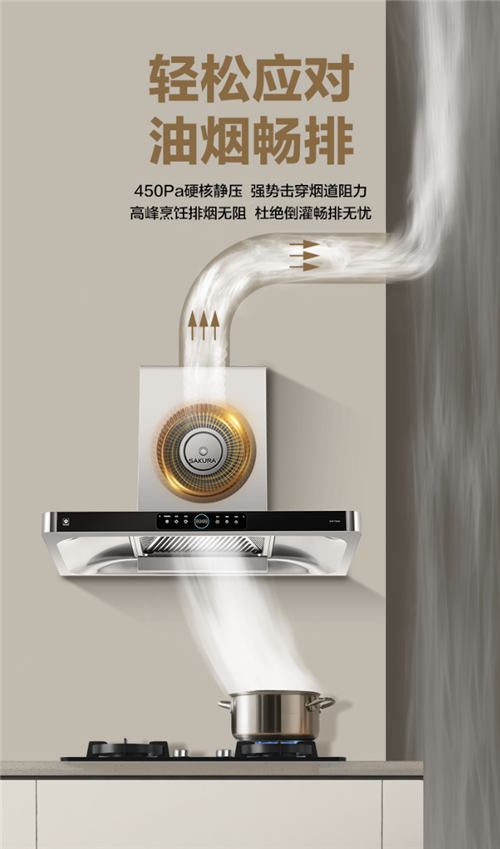 樱花吸油烟机T302A让家人的笑语在清朗安然的空间里自由流淌,让每一段烟火时光都自在舒畅。