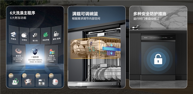 如今市面上那些布满按键、动辄十几种程序的电器,常常看得人眼花缭乱。而海信零菌洗碗机大薄荷系列C507iPro将最核心的“智能洗”功能放在了第一个最醒目的位置。只要轻轻按下,剩下的都交给洗碗机自动完成,这种“傻瓜式”操作,彻底卸下父母对复杂电器的心理包袱,用得安心又舒心。