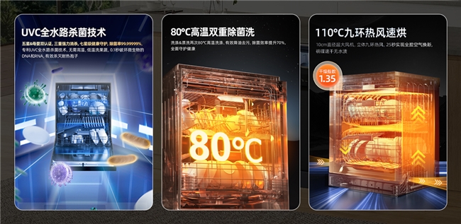 手洗餐具,最让人担心的就是看不见的病菌残留。而海信零菌洗碗机大薄荷系列C507iPro的三重消杀系统,构建了一套立体的健康防护网。UVC全水路杀菌把好消杀第一关;80℃高温煮洗,彻底消杀多种常见致病菌,相当于餐具做了一次彻底的“蒸汽 SPA”;洗涤结束后,等离子净味与110℃热风烘干让内腔和餐具迅速干燥,从根源上切断细菌滋生的温床,守护每一次入口的安心。