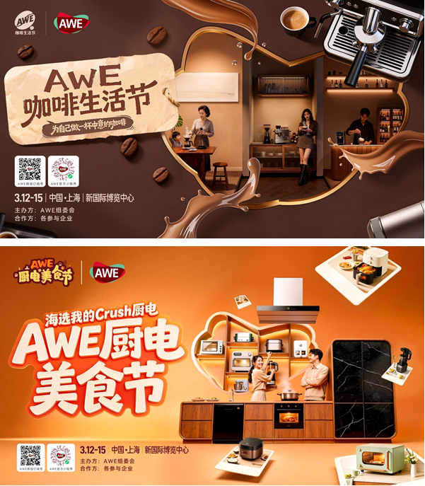 2026年是“十五五”开局之年。“十五五”时期,内需市场的平稳增长对我国家电行业高质量发展具有重要意义。为支持国家消费品以旧换新政策的持续实施,进一步发挥家电行业在扩内需、优供给、惠民生方面的重要作用,中国家用电器协会将再度联合京东、天猫、抖音商城、苏宁易购、小红书、快手等主流平台,在AWE2026期间举办AWE焕新消费节,以“春天第一场家电家居3C数码新品购物节”为口号,推动在AWE平台首发的家电家居3C数码潮品焕新消费。此外,中国家用电器协会还将携手AWE参展商,于展会期间在上海新国际展区举办AWE咖啡生活节、AWE厨电美食节和AWE直播之夜等重磅促消费活动,其中AWE咖啡生活节将以“为自己,做一杯钟意的咖啡”为口号,推动“家中现做咖啡”成为一种新潮生活方式,让专业咖啡体验走进更多中国家庭,助力咖啡文化与品质生活深度融合;AWE厨电美食节将以“海选我的Crush厨电”为口号,让现场观众通过场景化互动体验,找到适合自己生活方式的厨电,建立起与厨电新品的情感连接;作为AWE主办方全力打造的新IP,AWE直播之夜将于3月12、13日两晚在上海新国际展区现场上演,届时近千家参展企业将在同一时段开启全球规模最大的同场直播,将融汇最新科技的家电新品推介给全球消费者。