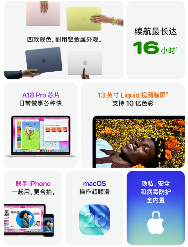 MacBook Neo:入门、便携、性价比(A系列芯片)。