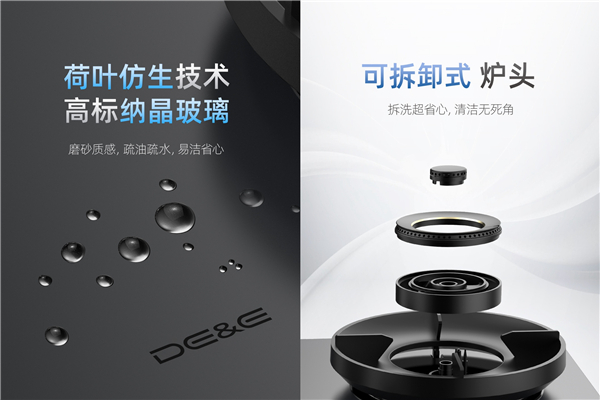 首先,灶具面板采用荷叶仿生技术,微纳米结构实现防水防油防指污效果,油渍轻擦即净,再搭配高标准纳晶玻璃*,带来表层高级磨砂质感,兼具美观与抗指纹、耐刮擦特性;再有,炉头是可完全拆卸式,包含燃烧室、大火盖、小火盖均可完全拆卸,深度清洁无死角;同时,锅架、水盘采用430不锈钢基材加表面晶搪处理,更耐磨耐擦,持久如新。