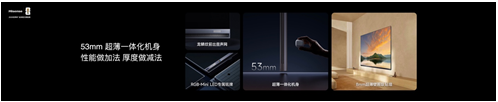 工业设计上,海信E7S Pro将技术与美学完美融合,通过高集成度的内部堆叠工艺,实现53mm超薄一体机身,搭配8mm极限贴墙设计,让电视宛如一幅悬浮于墙面的艺术品,完美融入各类家装风格。机身镶嵌的RGB-Mini LED专属铭牌,成为旗舰身份的独特标识;龙鳞纹仿生设计则在优化声音衍射的同时,让细节更具质感,真正做到“正面如画,侧视如锋”。