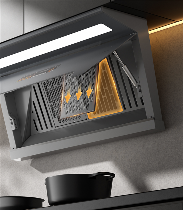 厨房环境油烟较多,如果表面材质不易清洁,烟机外观很快就会留下油迹与指纹。既影响美观,也增加清洁负担。樱花吸油烟机Q801采用一体可掀式AG玻璃面板,亲肤质地不易残留指纹和油污,日常清洁只需湿布轻轻一擦,即可焕然一新。深度清洁时,整块面板可掀开,配合人体工学支撑的设计,让轻抬固定更便捷,内部清洁轻松无死角。