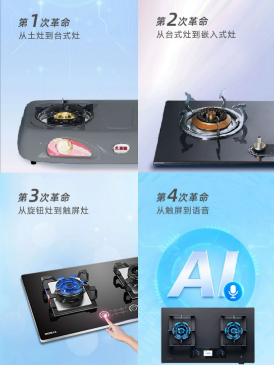紧跟家庭厨房升级趋势,火王引领从台灶到嵌灶、旋钮灶到触屏灶、触屏灶到智能灶的跨越式突破。2014年以“像苹果这样”为发心,历经4年研发,2018年首款触屏灶523/X诞生,实现火力数字化管控,彻底颠覆传统灶具操作模式,精准贴合现代家庭烹饪需求,凭借差异化创新,打破行业同质化僵局,引领灶具品类迭代升级。