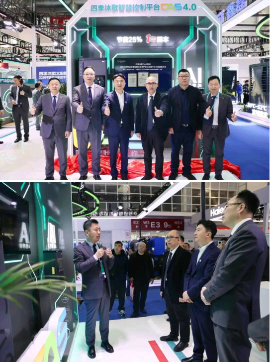 除发布太阳能热泵战略白皮书外,四季沐歌还在展会上集中推出一系列重磅新技术、新产品,其中四季沐歌CAS4.0清洁能源耦合智能操作平台、四季沐歌太阳能热泵光伏直驱高温热泵机组、热电气联产商用能源站解决方案震撼亮相,引发全场关注。这些新产品、新技术的持续创新与升级,为四季沐歌太阳能热泵战略落地提供了坚实支撑。