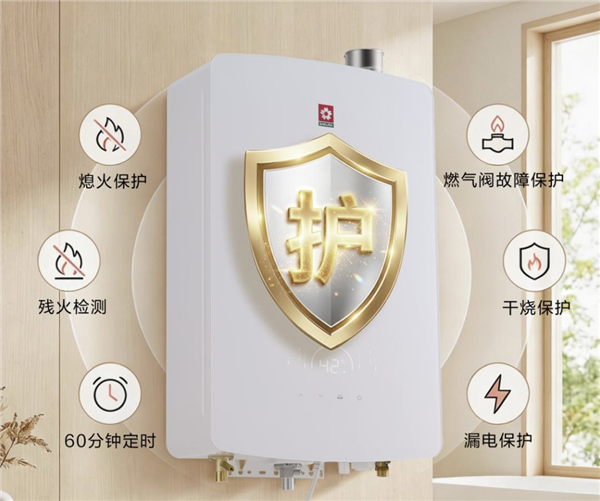 以多重的防护,让每一次热水使用都温暖无忧。樱花燃气热水器E611A配备六重安全防护装置,包含熄火保护、残火检测、60分钟定时、燃气阀故障保护、干烧保护、漏电保护等,为家人提供悉心的呵护,全方位守护用水安全,让温暖触手可及的同时,也让每一天都充满安全感。