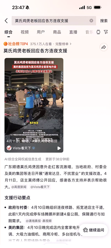 从政府疏导,到厨师驻店,再到美的连夜送装设备,围绕莫氏鸡煲展开的这场接力仍在继续。莫叔的走红,源于一个小店老板最朴素的真诚,而一方水土的务实、热忱与包容,为这份真诚稳稳地兜住了底。