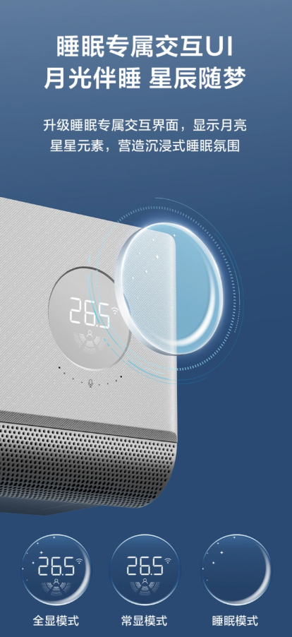 值得一提的是,这款空调还升级了专属睡眠交互界面,融入月亮与星星元素的柔和光效,从视觉上营造沉浸式睡眠氛围,帮助孩子建立规律的睡眠仪式感。