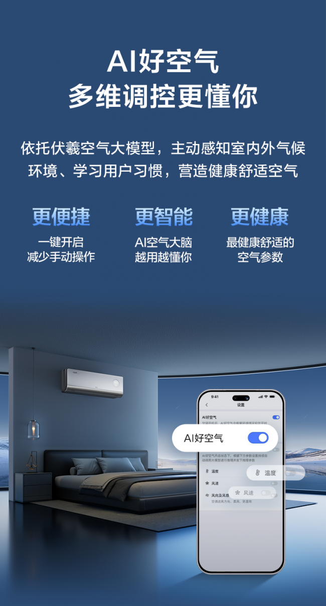 一键开启AI好空气功能,主动营造健康舒适空气