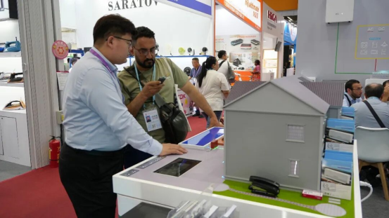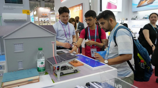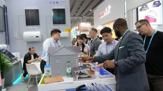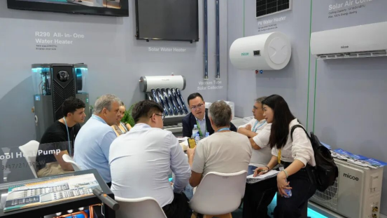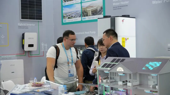 “光从屋顶来,电储在墙边,热泵供冷暖,热水全天候”——现场工作人员通过演示和专业讲解,让抽象的“光储热”多能互补概念变得直观可视。海外采购商纷纷驻足,围着四季沐歌展区拍照、询问技术细节、测算节能收益。不少客户当场表示:“这套方案正是我们市场需要的。”